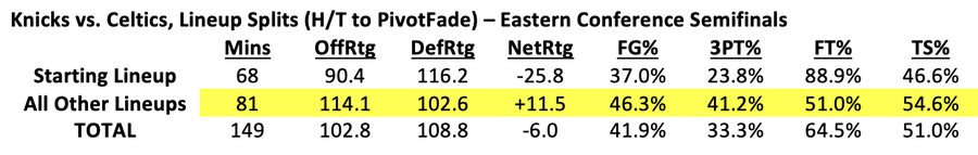 No matter what happens in this series, Thibs has dug his grave, and it’s incumbent on Leon to put him in it. Our offense is statistically worse than it was in ‘23 when Randle was hurt, Hart had the yips, and RJ Barrett was clanking. It’s almost as bad as it was in ‘21 when it was Randle vs everyone. There’s only one common denominator and he’s out of excuses.